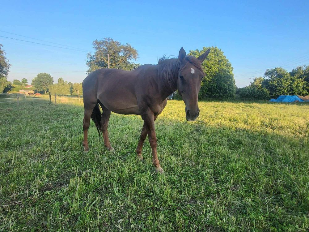 Toscane 18 ans, est une grande et belle jument d’environ 1m80 au garrot. Elle est non montable mais elle pourra cependant partager de merveilleux moment de complicité à travers le travail à pied, qu’elle apprécie beaucoup.